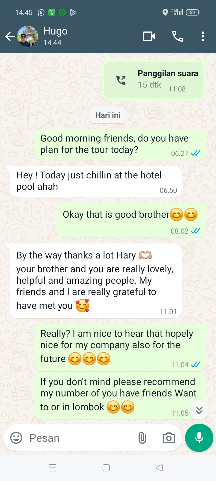Hellooooo Heri! How are you my friend? 😄 my friend from the netherlands Melissa will come to Lombok with her boyfriend the first of October! 🤩 I gave her your phone number, she will need a taxi in lombok! And we really liked you so hopefully you will drive her, with your new business santai travel 🥰